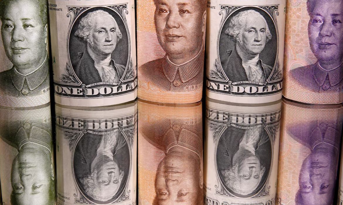 Ilustrasi dari dolar US dan yuan China