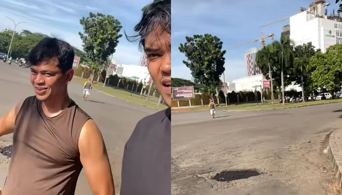 Dalam video tersebut, Surya tampak santai mengenakan kaos tanpa lengan dan celana pendek, membawa karung dan alat sederhana, sambil menambal lubang jalan yang kerap mengganggu pengguna kendaraan.
