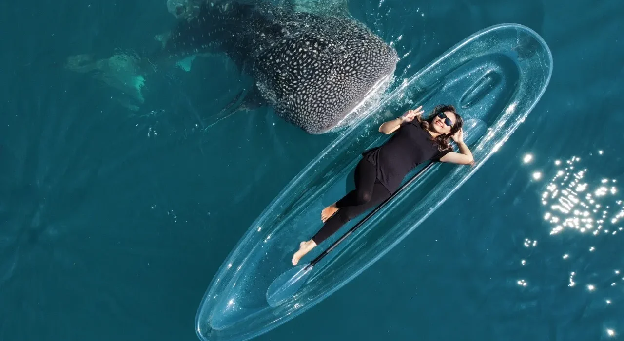 Pengalaman yang tak terlupakan bagi para wisatawan tersebut adalah ketika mereka menaiki perahu transparan dan berfoto menggunakan drone yang diterbangkan ke atas hingga memotret pemandangan langsung wisatawan berdekatan dengan hiu paus dari udara.