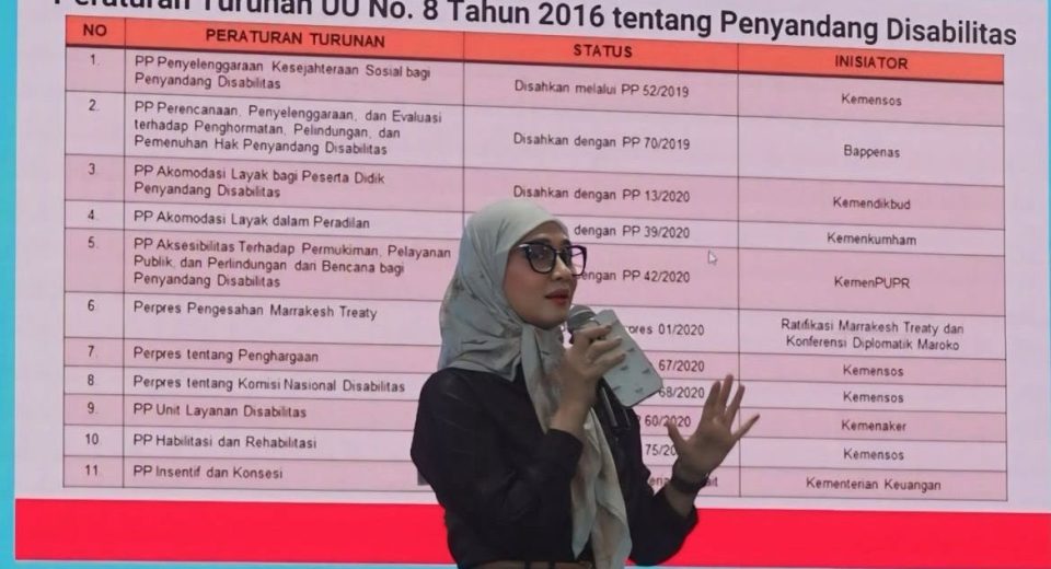 TERITORIAL.COM, JAKARTA — Angkie Yudistia, Staf Khusus Presiden RI periode 2019–2024, menekankan urgensi percepatan penyusunan dan pelaksanaan peraturan turunan Undang-Undang Nomor 8 Tahun 2016 tentang Penyandang Disabilitas. Angkie menganggap Peraturan Pemerintah (PP) mengenai insentif dan konsesi sebagai hal yang sangat penting, yang bertujuan untuk memperkuat perekonomian penyandang disabilitas. “Fokus saya adalah memastikan bahwa amanat UU […]